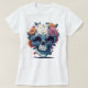 Boho style drawing of a skull wearing sunglasses and adorned with pastel colour flowers.