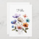 A watercolor illustration of pretty flowers in teal, peach, green, purple, blue. This botanical print is perfect for a simple Hello greeting, but you can change the text to your preferred greeting. AI assisted graphic purchased with commercial use. Artwork: DreamCafeArt