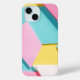 This phone case features a fun and bright geometric design. A lively combination of various shapes in pastel colours like pink, turquoise, yellow, and white creates a playful and artistic look.