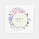 Chic pastel style blush pink, purple and mint floral wedding napkins with gold geometric frame.
