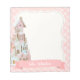 This note pad design features a trendy pastel gingerbread cookie castle made with 4 layers of cookie houses. Colours include light pink, light blue and light green and tan on a light pink snowflake background. You can personalise with a name.