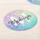 Pastel Glitter Bokeh Background Glam Elegant Round Paper Coaster