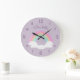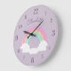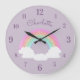 Pastel Glitter Rainbow with Custom Name on Purple Large Clock