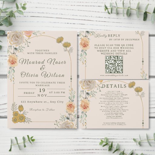 Pastel Gold Floral Wedding Suite Designed by Meziane Brahim