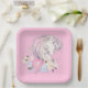 Pastel Gold Glitter Unicorn and Baby with Flowers Paper Plate