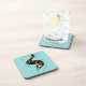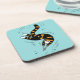 Funny cat coaster with an ink illustration of a weird cat creature swimming with eel like movements over light blue customisable background. Flesh is somehow stripped from its hands showing its skeleton, yet the cute animal is in its happiest state of mind. That's what sea and ocean make you feel - bliss.