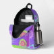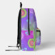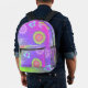 Express yourself with this retro pastel gradient purple, pink and green background colors backpack. Decorated with multi-colored flowers, butterflies and psychedelic shapes pattern.