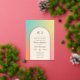 Pastel gradient in blue pink yellow retro style with monogram and golden foil arch frame design. This card is easily editable. If you need help with the customisation of this card or you need more matching products for this collection kindly message me via Zazzle.