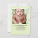 Baby birth announcement card featuring a photo of your own baby framed by an elegant green design. On the back is space for another photo and more text.