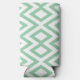 Pastel green geometric pattern white seltzer can cooler