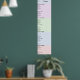 Growth chart poster of light pastel colours of pink, blue, green, and purple in the background. Keep or change it, when you customise it. Track your child's growth with this growth chart. Begins at 17 inches and ends at 65 inches. Change the "Name" on the chart. Resize the text or add a different font. Add clip art or little drawings from your child to the chart. Create your design look.