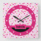 Pastel Hearts on Pink Personalised Square Wall Clock