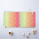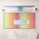 This image features a repeating grid of hexagons arranged in vertical columns. The colours transition smoothly across the design, blending pastel tones of green, yellow, orange, and pink, giving it a soft, retro, and summery vibe. The overall effect is visually pleasing, with the interlocking hexagons producing a honeycomb-like pattern that is both geometric and playful.