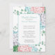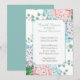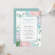 Pretty bridal shower invitation, with graphics of pink, blue, and white pastel hydrangeas and green ivy, against a white background. A robin's egg blue edged white text area, in the middle, has custom text ready to personalise.
