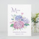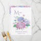 Pastel Hydrangeas Wedding Menu designed with bright hydrangeas floral bouquet on a white background. The front text includes: Menu, The Bride and Groom's Names and Wedding Date. The reverse text includes: Menu, and Appetizer, Entre and Dessert Selections. To personalise, simply insert your details into our easy template, replacing the sample.