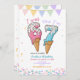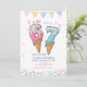 Pastel Ice Cream Six Seven Birthday Party Glitter Invitation