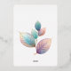 This image features a clean and sophisticated design centred around delicate, pastel-coloured leaves. The leaves have a translucent, almost ethereal quality, with soft hues of blue, pink, and lavender blending seamlessly. The minimalist white background enhances the design's elegance, drawing attention to the subtle details of the foliage. This creates a calming, nature-inspired aesthetic, perfect for modern and romantic occasions.