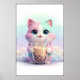 Pastel Kitty with Bubble Tea Art Poster