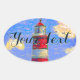 Pastel Lighthouse, clouds and your text Oval Sticker