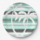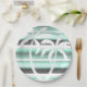 Pastel Mint Green Grey Watercolor Stripes Pattern Paper Plate