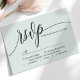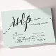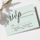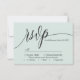 This pastel mint green RSVP card features a modern calligraphy script font, adding a touch of timeless grace to your wedding stationery. The minimalist design keeps the focus on the RSVP details, ensuring a clear and stylish response from your guests.