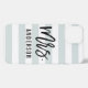 After the wedding, show off your new last name with this sleek and stylish case -- perfect for the honeymoon! Personalised bride design features "Mrs. [lastname]" in modern black typography on a background of subtle pastel mint green and white stripes. Use the field provided to personalise with your new last name.