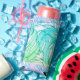 Pastel monstera palm leaf tropical watercolor seltzer can cooler