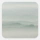 Photo sticker with a pastel coloured landscape with the silhouettes of two houses and rows of cypress trees surrounded by patches of foggy during a sunrise in the early morning in Val d'Orcia Valley in Tuscany, Italy.