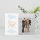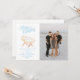 This Christmas card features a nativity image of baby Jesus sleeping in a manger. The top has a greeting that says "Hark the Harold Angels Sing." You can personalize with names and a year.