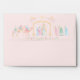 This envelope has a pastel color palette and features and angel on the front with text that says "kindly deliver to." You can add your name and return address. The back flap has a nativity scene and the inside has an angel pattern.