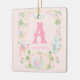 This traditional Christmas ornament features a nativity image of baby Jesus sleeping in a manger with Mary and Joseph in the center surrounded by a the wise men and two angels. In the center you can add your initial and a name.