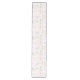 This Christmas table runner features pastel nativity scenes of baby Jesus sleeping in a manger with Mary and Joseph, three wise men and angels.