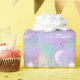 A pretty pastel colour night sky with glowing stars and a glowing pink moon. Sprinkled with silver stars and cosmic glitter. Very cute and colourful design .Personalise on back if you wish. In colours of purple, pink, yellow and teal.