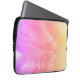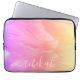 Prevent scratches and protect your laptop in style! This sleeve features a lovely close-up photograph of swans feathers with an ombre rainbow color effect. Personalize this girlie case with your name in a modern white script.