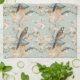 Pastel Oriental Bird and Fruit Blossoms Tea Towel