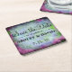 Font style, size, and colour can be customised. The coaster shape can also be changed to fit your needs.