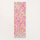 A luxury design yoga mat with a paint splatter effect in pastel reds, purples, yellows and aquas - a really funky design!