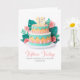 Surrounding the cake, layered botanical elements unfold like a paper garden: lush teal leaves and soft coral flowers add depth, texture, and a sense of quiet movement, giving the artwork a beautifully dimensional, almost sculptural feel. The color palette is harmonious and calming, striking the perfect balance between youthful charm and refined design.