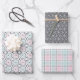 Bring a stylish blend of modern and cozy charm to your gifting with this pastel geometric collection. Featuring three beautifully coordinated patterns—a bold charcoal floral lattice, a soft plaid in mint and blush, and a playful retro circle motif—this set captures a fresh, contemporary look with a hint of vintage flair. Perfect for birthdays, baby showers, weddings, and thoughtful everyday gifts, these patterns add elegance, color, and personality to every beautifully wrapped present.