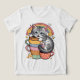 Feel the charm of the "Pastel Paws & Rainbow Sips" T-shirt, a delightful design featuring an adorable grey kitten nestled among a stack of multi-coloured mugs against a soft pastel rainbow backdrop. This whimsical illustration captures the essence of kawaii culture, combining calming pastel colours with playful elements like smiling stars and buzzing bees.