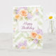 Pastel Peach Lavender Floral Sage Chevron Birthday Card