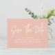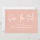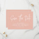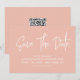 Modern calligraphy save the date in pastel peach with a digital scannable QR code for a website or contact information on the back.