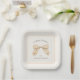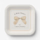 Pastel Peach Plaid Bow Elegant Neutral Baby Shower Paper Plate
