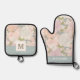 Pastel Peony & Butterfly Flower Pattern Oven Mitt & Pot Holder Set