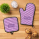Pastel Personalised Pink and Lavender Striped Oven Mitt & Pot Holder Set