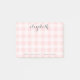 Pastel Pink and Grey Buffalo Check Add Your Name Post-it Notes