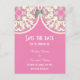 Pastel pink and white lace filigree save the date announcement postcard