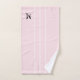 Create your own custom, personalised, cool, classy, stylish, classic, white racing stripes design, modern, minimalist, elegant black calligraphy typography script font monogrammed initial on luxe light pastel pink colour background, trendy, machine washable, bath towel set that includes 30" x 60" bath towel, 16" x 28" hand towel and 13" x 13" washcloth. To customise, simply type in your monogram / initials. Makes a great custom gift for birthday, fathers day, mothers day, wedding, graduation, christmas, holidays, new years, and more, for your loved ones, kids, grandkids, mum, dad, grandpa, grandma, brother, sister, son, daughter, uncle, aunt, husband, wife, bride, groom, friends and family.