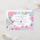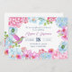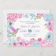 Pastel pink blue floral branch with bird wedding invitation