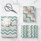 Pastel Pink Chevron Pattern with Teal and Beige Wrapping Paper Sheet